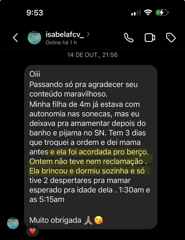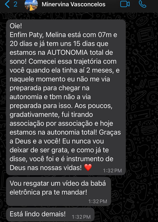 Envie suas duvidas que eu (ou alguém da minha equipe) vou te ajudar no seu processo ate o seu bebezinho aprender a dormir sozinho.